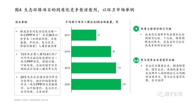 这样带来的直接后果就是同质化竞争愈演愈烈,价格战时有发生,不仅影响企业的盈利水平,也对后期的运营带来隐患。由于缺乏有门槛的技术壁垒,一些环保项目的招标活动动辄十几家甚至数十家企业参加(见图4),而针对一些技术难度大的项目,要么无人问津不敢接手,要么接手了之后最终陷于无计可施的尴尬境地。