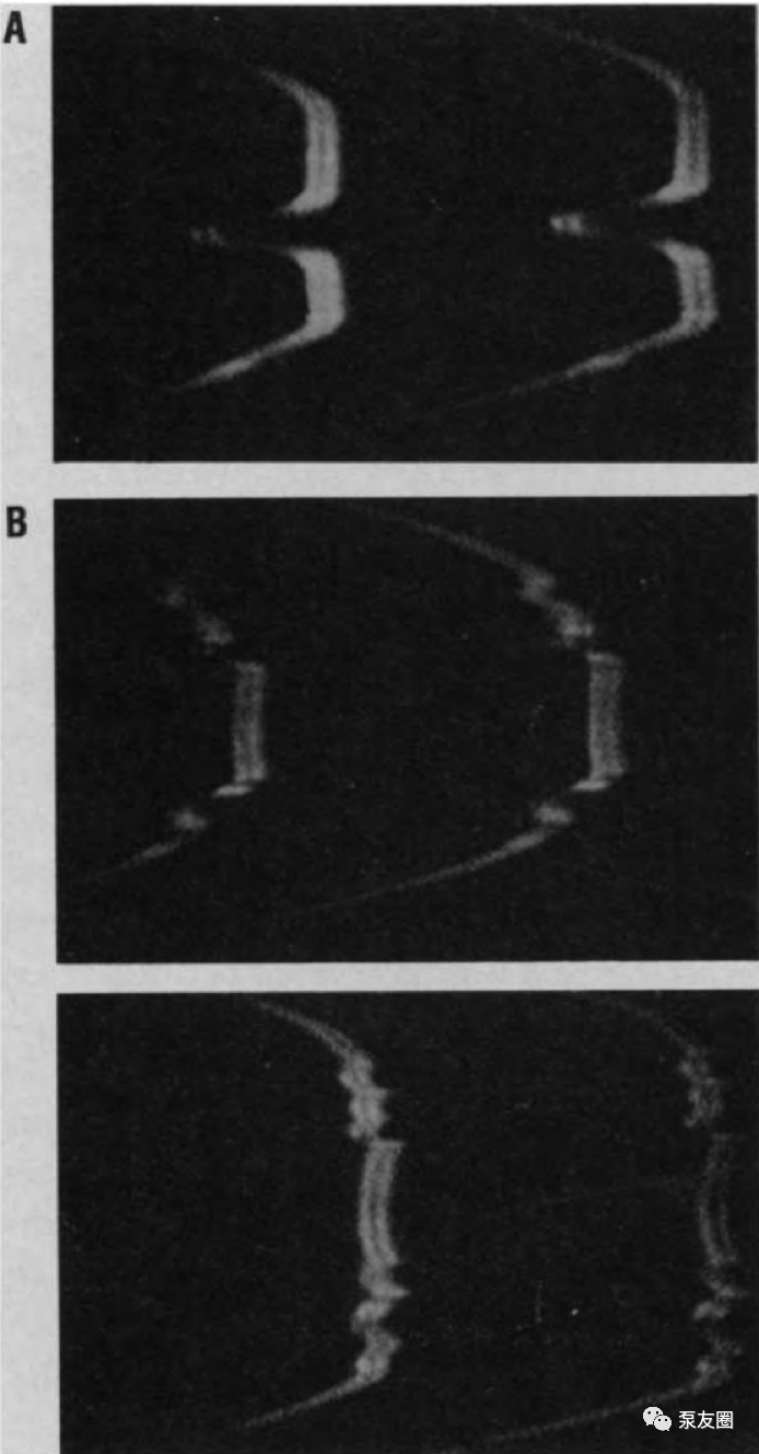 迄今为止,此类实验无法确定空蚀发生时气泡的形成—发育—破裂周期的确切阶段 (6)。空泡生长和破裂的整个过程通常发生得非常迅速(10-6, 到10-3 s),并且所有有趣的特征都具有亚微观尺寸。由于这些原因,很难研究空泡的快速增长和破裂,尤其是这些过程与(弹性流体动力学)表面变形以及最终空蚀之间的关系。然而,通常认为空蚀只发生在空泡破裂(消亡)期间(4-7)。