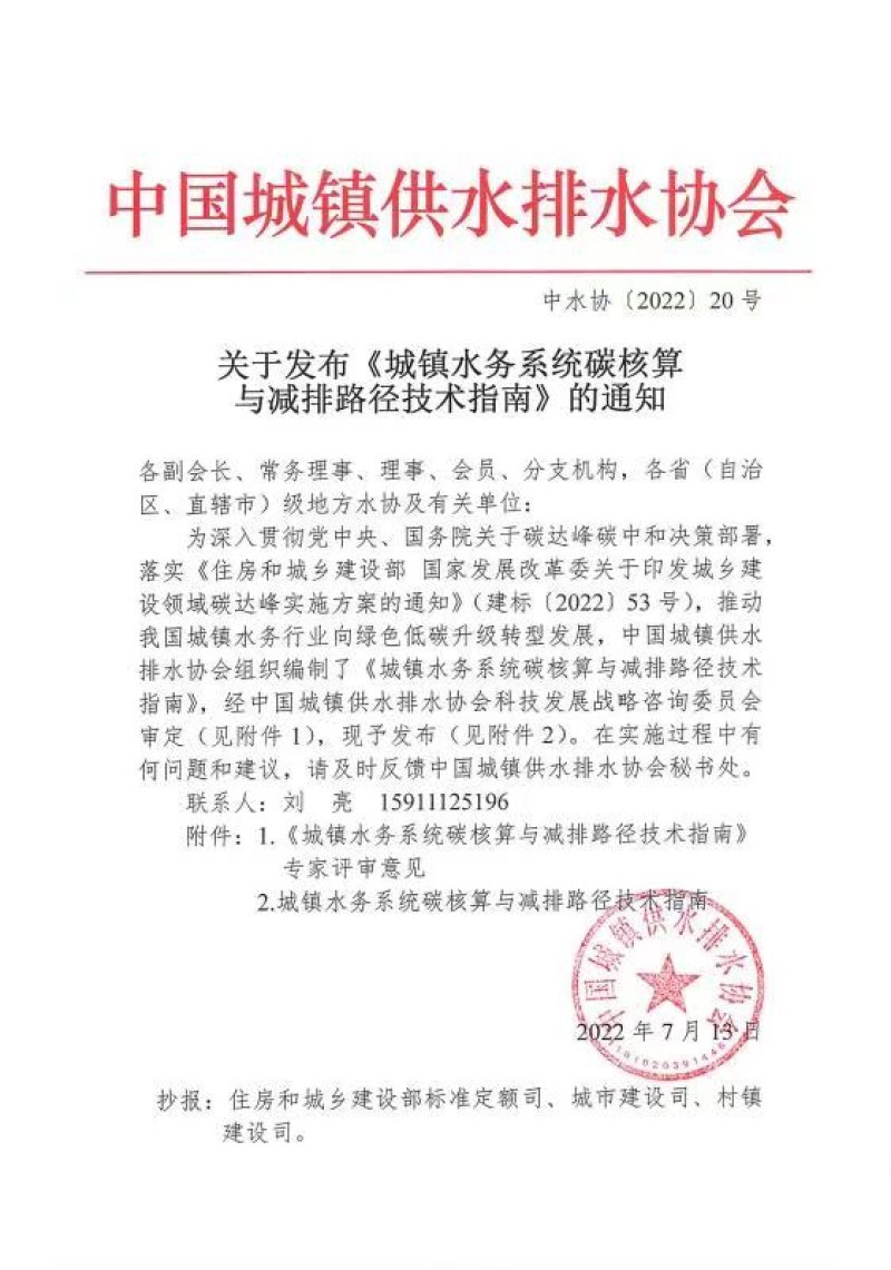 为深入贯彻党中央、国务院关于碳达峰碳中和决策部署,落实《住房和城乡建设部 国家发展改革委关于印发城乡建设领域碳达峰实施方案的通知》(建标〔2022〕53号),推动我国城镇水务行业向绿色低碳升级转型发展,中国城镇供水排水协会(以下简称中国水协)组织北京建筑大学、北京首创生态环保集团股份有限公司、北京城市排水集团有限责任公司、中建环能科技股份有限公司、中国市政工程中南设计研究总院有限公司、哈尔滨工业大学等单位编制了《城镇水务系统碳核算与减排路径技术指南》(以下简称指南),现予发布。