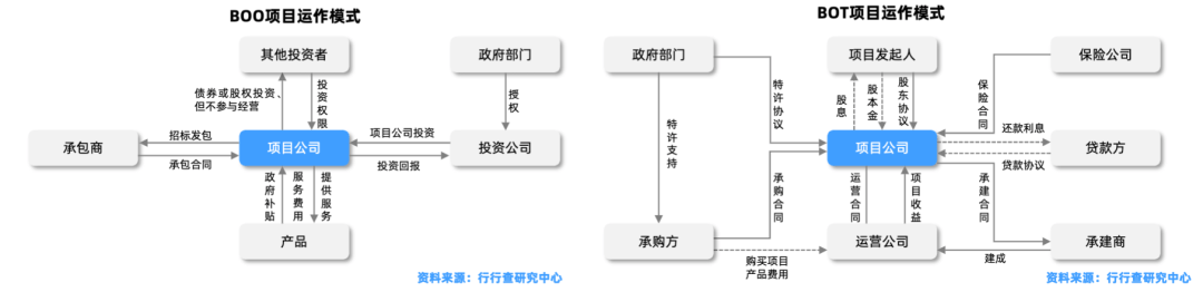 boo:building-owning-operation,即“建设-拥有-经营”,承包商根据政府赋予的特许权,建设并经营某项产业项目,但是并不将此项基础产业项目移交给公共部门。