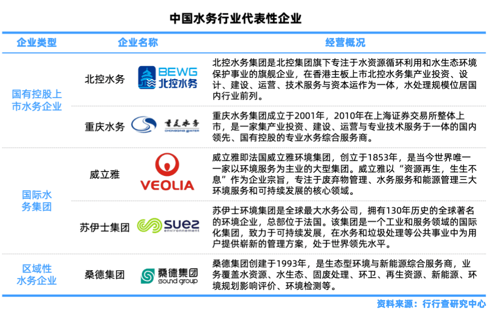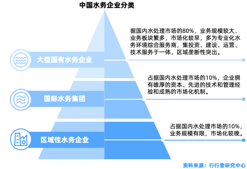大型国有水务企业、国际水务集团以及区域性水务企业成为水处理行业的主要竞争者。