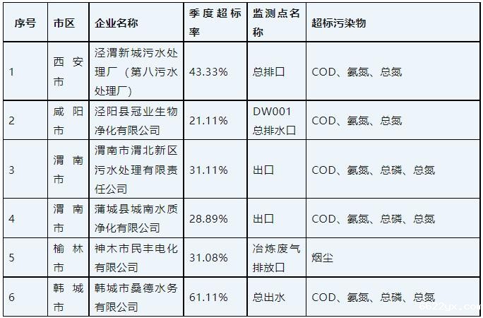 陕西省公布2023年第一季度主要污染物排放严重超标重点排污单位“黄红牌”名单